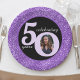 Placa de papel de aniversário alegre, brilhante, preto e roxo, para uma criança de 50 anos. Excelente de design de vidro cintilante para mulheres. Personalize a idade para se adequar à sua ocasião e adicione uma fotografia pessoal do destinatário. Excelente para o cinquentenário ou decoração de festas de aniversário para uma festa de cinquenta anos.