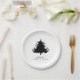 Black tree paper plates for the holiday party season. Unconventional and simple design, with custom text beneath. Sample wording is, "Merry Christmas", and is easy to change. A perfect design for a minimalist holiday party, in black and white.