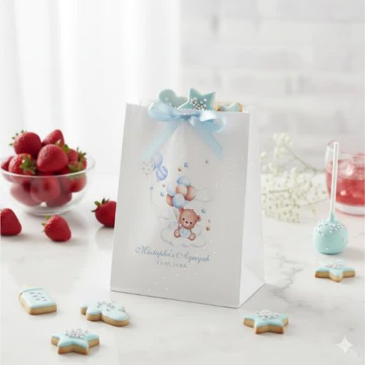 Add a sweet touch to your Aqiqah celebration with these adorable blue paper plates. Featuring a cute teddy bear with balloons and soft clouds, they’re perfect for celebrating your baby boy’s special day. Ideal for Islamic baby showers or naming ceremonies — stylish, practical, and customizable with your child’s name.