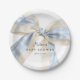 A cute baby shower paper plate for a baby boy or gender neutral baby shower, this design has a large pastel blue gingham checks bow tilted to one side. A simple text template allows you to personalize this plate with the guest of honor's name and the shower date. Plates are available in 2 sizes: shown here in the smaller 7-inch diameter size, they are also available in a larger 9-inch diameter size.