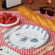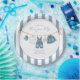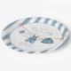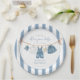 Celebrate the joyous arrival of your little boy with our "Blue Jean Baby" baby shower paper plates. This charming disposable plate features soft denim details like cute baby clothes and trendy stripes as background.