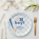 Prato De Papel Blue Plaid Little Slugger Baseball Baby Shower