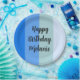 Legal padrão de listras azuis com texto: Feliz aniversário e um nome modelo. Ajustado estilo marítimo.