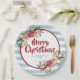 Chapas de papel de Natal elegantes design com aquarelas florais de inverno e listras azuis.