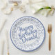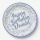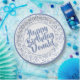 This over-the-hill design has a blue and white random number pattern with a blue milestone number 70 repeated in varied sizes and angles. There is a white circle in the center for your text and blue and white rings around the rim.