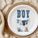Bem-vinda ao seu bebê do "Boho" com o Tema de Chá de fraldas do "É um Menino"! Apresentando uma lindíssima linha de cor d'água pintada em azul macio, coisas para bebês e brinquedo do Urso, esta Prata de Papel captura perfeitamente o encanto de uma celebração com tema fofo. Os delicados tons de design e pastel o tornam ideal para um chá de fraldas íntimo e na moda. Personalize com seus detalhes de eventos e defina o tom para uma reunião memorável enquanto celebra a chegada do seu bebê. Produtos correspondentes disponíveis na minha loja.
