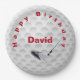 Feche o padrão da bola de golfe branca com um clube de golfe para o aniversário. O texto é editável. O nome pode ser excluído.