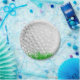 A placa perfeita do partido para um jogador de golfe ávido, esta placa de papel do divertimento é projetada olhar como uma bola de golfe que senta-se na grama.