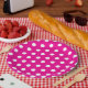 Prato De Papel Bold White Polka Dots on Hot Pink