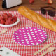 Prato De Papel Bolinhas brancas na fúcsia