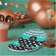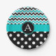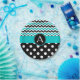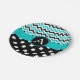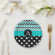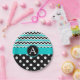 Design do monograma com turquesa, teste padrão preto e branco da viga e as bolinhas preto e branco. O quadro Resizable do círculo para inicial feito sob encomenda ou remove-o completamente e adiciona-o o texto à listra de turquesa! Original de PinkInkArt!