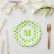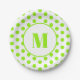 Prato De Papel Bolinhas Monograma Verde limão inicial em branco