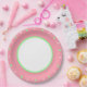 Prato De Papel Bolinhas Verdes Rosa Mint