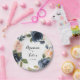 Este elegante prato de bolo de casamento para caligrafia floral de inverno é perfeito para uma recepção de casamento moderna. O design apresenta belas flores azuis escuras, azuis, marinhos, rosa, pinceladas, douradas e folhagem verde pintadas manualmente, amontoadas em buquês elegantes. Faça-o por você adicionando os nomes da noiva, noiva e data de casamento.