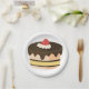 Um bolo com morango em cima. Este design parece realmente eficaz nestas placas de papel