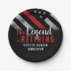 Este design apresenta uma bandeira de bombeiros com faixas pretas e brancas, e uma fina faixa vermelha de linha também. O texto "A lenda está se aposentando" fica acima do nome do bombeiro aposentado, tenente ou chefe. Celebre em estilo!