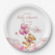 Bonita "podemos esperar" pratos de chá de fraldas de miúda rosa, com o tema do ursinho. Você pode personalizar os detalhes do seu chá de fraldas no texto moderno. Projetado por Thisnotme©