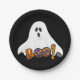 Aprecie sua família e seus amigos com esta placa de papel projetada para o Dia das Bruxas. Esta placa preta tem um fantasma e um BOO decorativo! Um prato bonito para crianças ou festas de Dia das Bruxas.