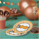 Estes pratos de festas de Halloween são uma bela adição para a sua celebração. As abóboras sorridentes ajudam a soletrar a palavra "boo". O padrão de fundo está cheio de fantasmas amigáveis, abóboras, doces e as palavras "truque ou trato".