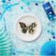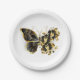 Prato De Papel Borboleta Flor Dourada com Orquídea Preta
