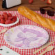 Prato De Papel Borboleta rosa e roxa Personalizada Primeiro Anive