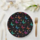 placas de papel desenhadas com um padrão elegante, com uma ilustração gráfica de borboletas flutuantes em muitas cores brilhantes, que contrastam muito bem com o fundo preto. Os florais, os prigos e as folhas do trigo, por exemplo, são um pouco carinhosos.