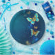 Prato De Papel Borboletas de Ouro em um fundo azul