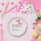 Estas adoráveis placas de papel de chá de fraldas de borboleta apresentam duas borboletas cor-de-rosa para um evento temático para meninas gêmeas. O design é acentuado com o texto lúdico "devido a dois BEBÊS", que combina a letra da moenda com letras de blocos multicoloridas para uma placa de papel de cor branca.