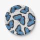 Design de padrão sem costura com borboletas morfo azuis em flores de hydrangea fundo do trabalho linhado.