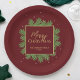 Pratos de Papel Botânico Moderno Elegante Borgonha Vermelha de Natal