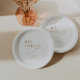 Elevem sua celebração de casamento com a combinação perfeita de minimalismo e elegância incorporada em nossas Pratas do Livro Branco adornada com um monograma sutil. Aceite a sofisticação sem esforço e torne seu dia especial realmente memorável. Coordena-se com a Coleção de Convite Caseiro "Chloe". Descubra o conjunto de correspondência de cheios clicando no link de coleta nesta página.