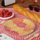 Bright orange floral pattern on summery paper plates.