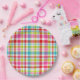 Prato De Papel Bright Rainbow Plaid Checkered Pattern