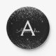 Prato De Papel Brilho Preto Prateado Monograma Aniversário