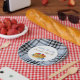 Personalize pratos de brunch de panqueca xadrez para o seu próximo evento! Tenho pratos correspondentes, convites e cartões de agradecimento, confira minha loja!