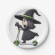Prato De Papel Bruxa Rapariga com Gato soltando um Patinete