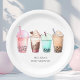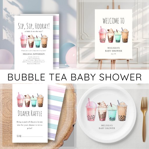 Prepare-se para uma celebração encantadora em homenagem ao seu precioso de alegria com nossas charmosas placas de chá de fraldas. Estes pratos exibem uma deliciosa fileira de copos de aquarela que brilham com um delicioso chá de bolhas.