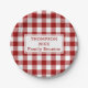 Prepare-se para uma reunião familiar com placas de papel com quadrados vermelho-escuro, branco e vermelho-claro em uma xadrez clássica de verificação de búfalos com até 3 linhas de texto em um retângulo branco no centro. Perfeito para um churrasco anual, piquenique ou uma nova tradição. Personalize-o com seu nome e texto na barra lateral. Para ver os padrões design Red and White Gingham em outros itens, clique no link "Rocklawn Arts" abaixo. Imagem criada digitalmente. Copyright ©Claire E. Skinner. Todos os direitos reservados.