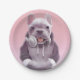 Prato De Papel Bulldog Francês com Ilustração de Fones de ouvido