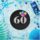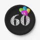 Buquê de balão colorido com fitas no número 60 com fundo preto. A cor de fundo pode ser editada.