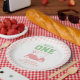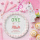 Prato De Papel Buraco em uma garota de cheque rosa no primeiro an