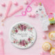 Esta bela placa de papel de Casamento apresenta rosas de cor d'água borgonha e borrão com a citação Felizmente, depois de começar aqui, a placa é projetada para coordenar com a coleção Charlotte Wedding. © Julie McIver
