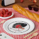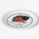 Conjunto de oito placas de papel de 9" com uma imagem de cabaré de um ventilador de penas pretas, balões vermelho e preto e uma máscara vermelha. Ver pote de doces correspondente, espresso, caneca, frasco, arremessador, vidro alveolado, bule de chá e portas copos. Veja toda a coleção de Placas de Cancelamento na COMIDA/BEV | Seção pratos.