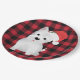 Prato De Papel Cachorro de West Highland com Xadrez de Santa Hat
