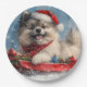 Prato De Papel Cachorro Keeshond em Sledge Deixe-o nevar no Natal
