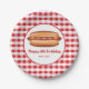 Prato De Papel Cachorro Quente No Padrão Vermelho De Gingham Feli