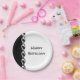Prato De Papel Cadeia de Aniversário Preta e Branca Feliz