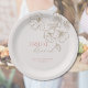 Pratos de papel de tom rosa e dourado elegante para café da noite de noiva. Flores douradas minimalistas com escrita elegante, personalizável de acordo com sua preferência. Fundo de cor neutra. Você pode encontrar outros produtos de café da noite de noiva e chá de noiva com este design na Coleção de Café da Noite de Noiva com Flores Douradas Elegantes na loja The Gathering Designs.
