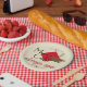 Este design homenageia o amor do dia a dia, doado em Mãe Café. Foi inspirado por momentos de precioso partilhados pela mesa da cozinha da minha mãe. Mostrado aqui em vermelho com um fundo bege neutro, este item também está disponível em ouro. Os guardanapos correspondentes estão disponíveis neste motivo.