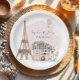 Prato De Papel Café francês Bonjour Bebe Paris Tea Chá de fraldas